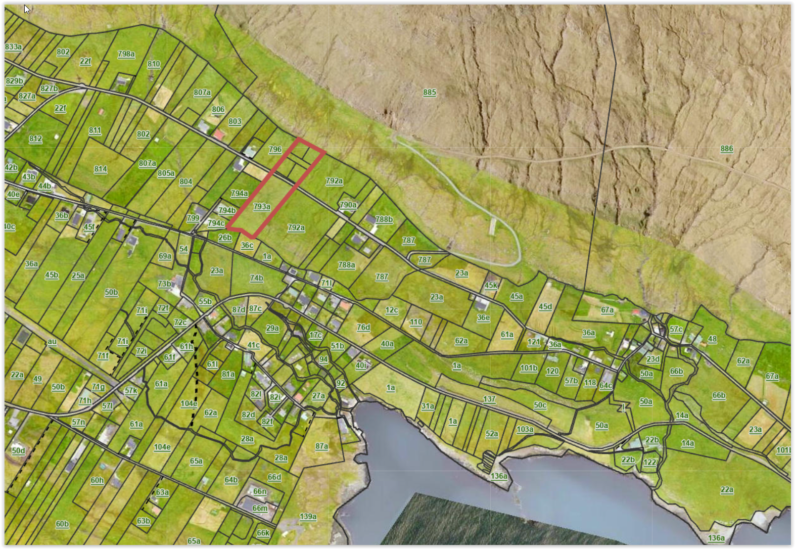 Jørðin og grundstykkini liggja í náttúruvøkrum, friðarligum og barnavinaligum við góðum og vøkrum útsýni yvir umhvørvið, landslagið og fjørðin.