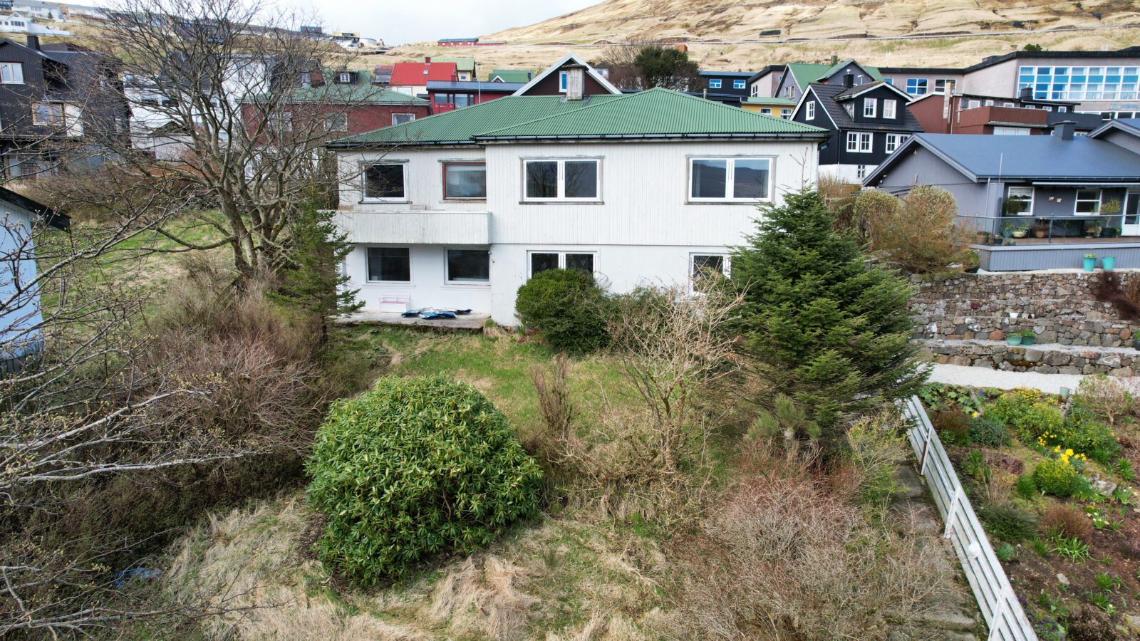 Húsini standa væl fyri í góðum og friðarligum grannalagi og í náttúruvøkrum og barnavinaligum umhvørvi við sera góðum útsýni yvir bygdina, landslagið og fjørðin.
