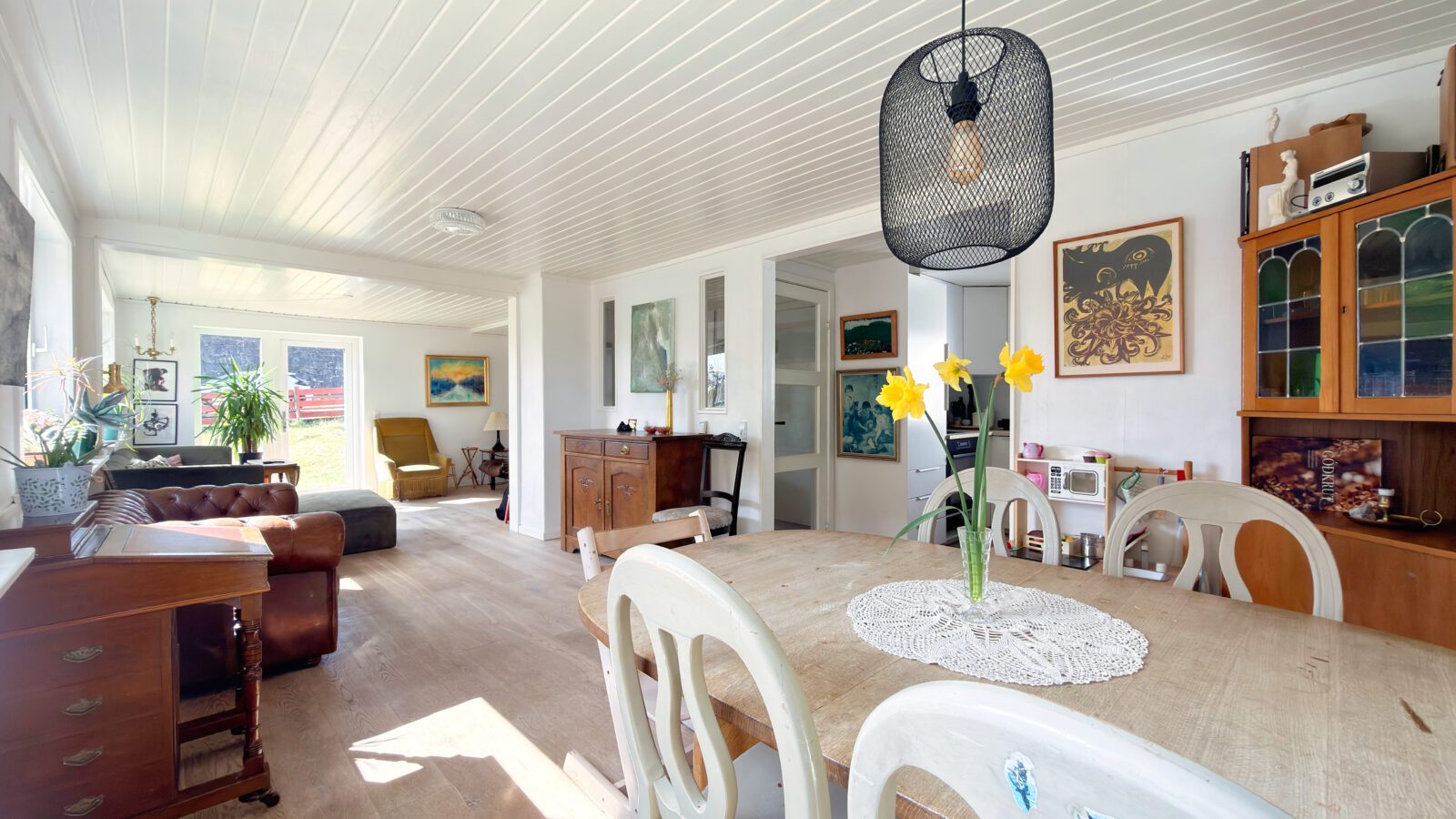 Í niðaru hæddini til húsið er durur, gongd, kamar, køkur og stova við hurð út í garðin, millumgongd, baðirúm, vaskirúm, teknikkrúm, hjallur/kuldarúm og arbeiðsrúm. Í ovaru hæddini er gongd, 4 kømur og vesi.