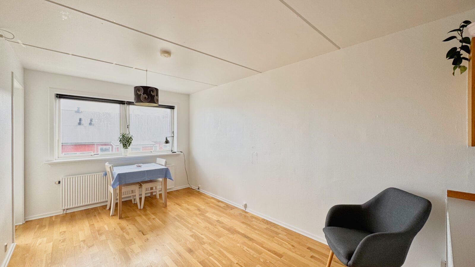 Snøgga íbúðin, sum er innflytingarklár, liggur í góðum íbúðarhúsi í friðarligum, veðurgóðum og barnavinaligum umhvørvi við blindan veg. Nakað av útsýni er til nærumhvørvið, landslagið og út á fjørðin. Dagstovnur er beint við, skúlar, tænastur, handlar og busssamband er heilt nær við.